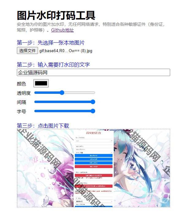 专门用于给图片加水印打码的工具,完全基于浏览器本地API,无任何网络请求(特别适合身份证等敏感证件),可用于网站发表图文文章,社区等等,有效防止别人盗图使用!