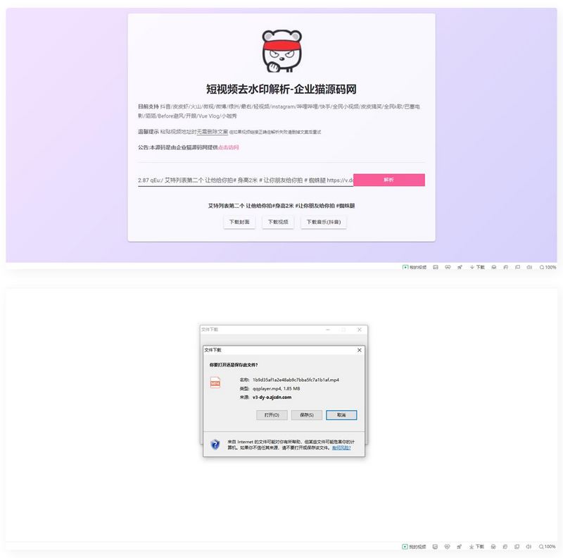 企业猫测试了下。打开速度较慢,但9-16号可以正常使用该源码去除抖音短视频水印,剩下的视频平台没有测试