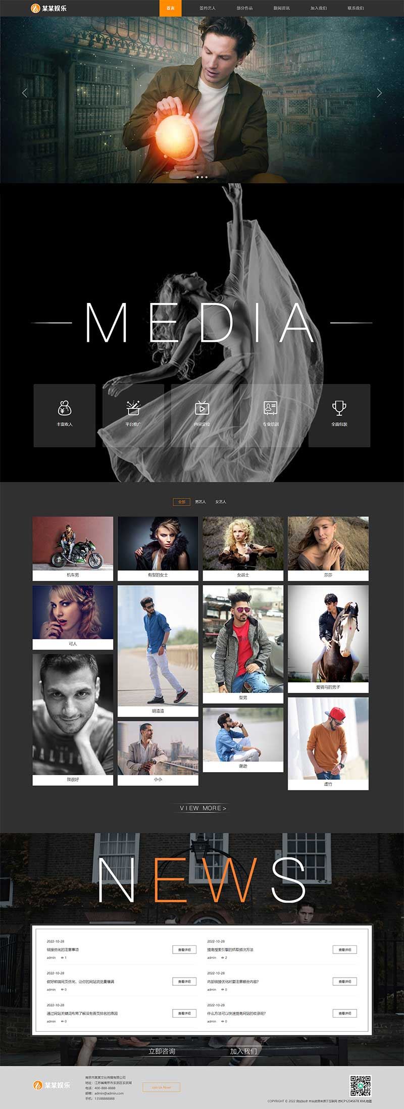 PbootCMS内核开发的网站模板,该模板适用于文化传媒网站模板、娱乐主播网站模板、直播培训网站源码等企业,当然其他行业也可以做,只需要把文字图片换成其他行业的即可;