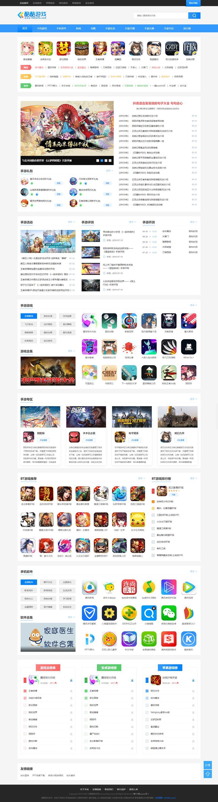 帝国CMS7.5仿《酷酷游戏网》源码,帝国CMS手游综合门户网站模板,外观大气漂亮的手机游戏下载、游戏资讯、游戏新闻门户、综合手游门户网站模板,包含礼包功能、开测功能、专题、专区。